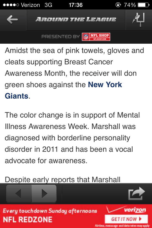 Brandon Marshall is wearing green
